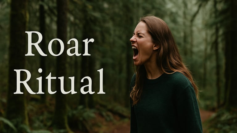 Our Roar Ritual is a rage ritual in a structured, guided nature-based outdoor emotional release experience designed to help participants safely release pent-up stress, frustration, or emotions through sound, breath, movement, and connection with nature. We provide a supportive environment for natural emotional expression and nervous system release, something humans have done instinctively for thousands of years.